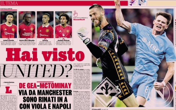 La Gazzetta dello Sport previews Saturday’s big Serie A game between Fiorentina and Napoli, highlighting that David de Gea and Scott McTominay look reborn after leaving Manchester United.