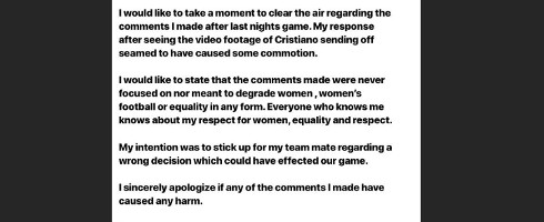 “I would like to state that the comments made were never focused on nor meant to degrade women, women’s football or equality in any form.