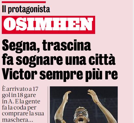 Napoli fans are so in love with Victor Osimhen that they are not only queuing to buy his shirt but also replicas of his protective mask outside the Stadio Maradona, reports La Gazzetta dello Sport.