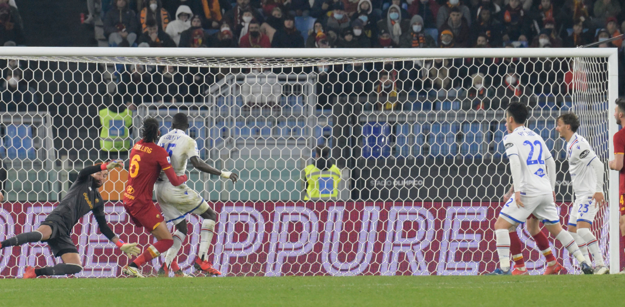 After a double Wladimiro Falcone save, Shomurodov showed great resilience to fire in at the third time of asking and give Roma the lead.
