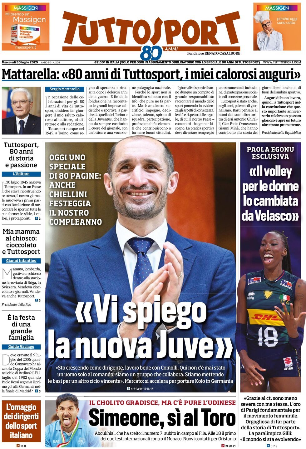 Mattarella: ’80 years of Tuttosport, my warm wishes.’