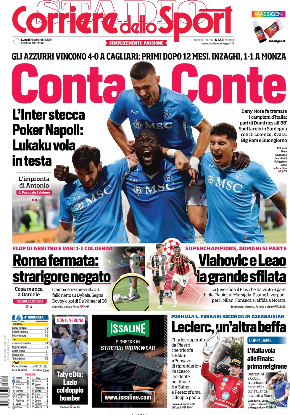 Inter slip, poker, Napoli. Lukaku flies to the top